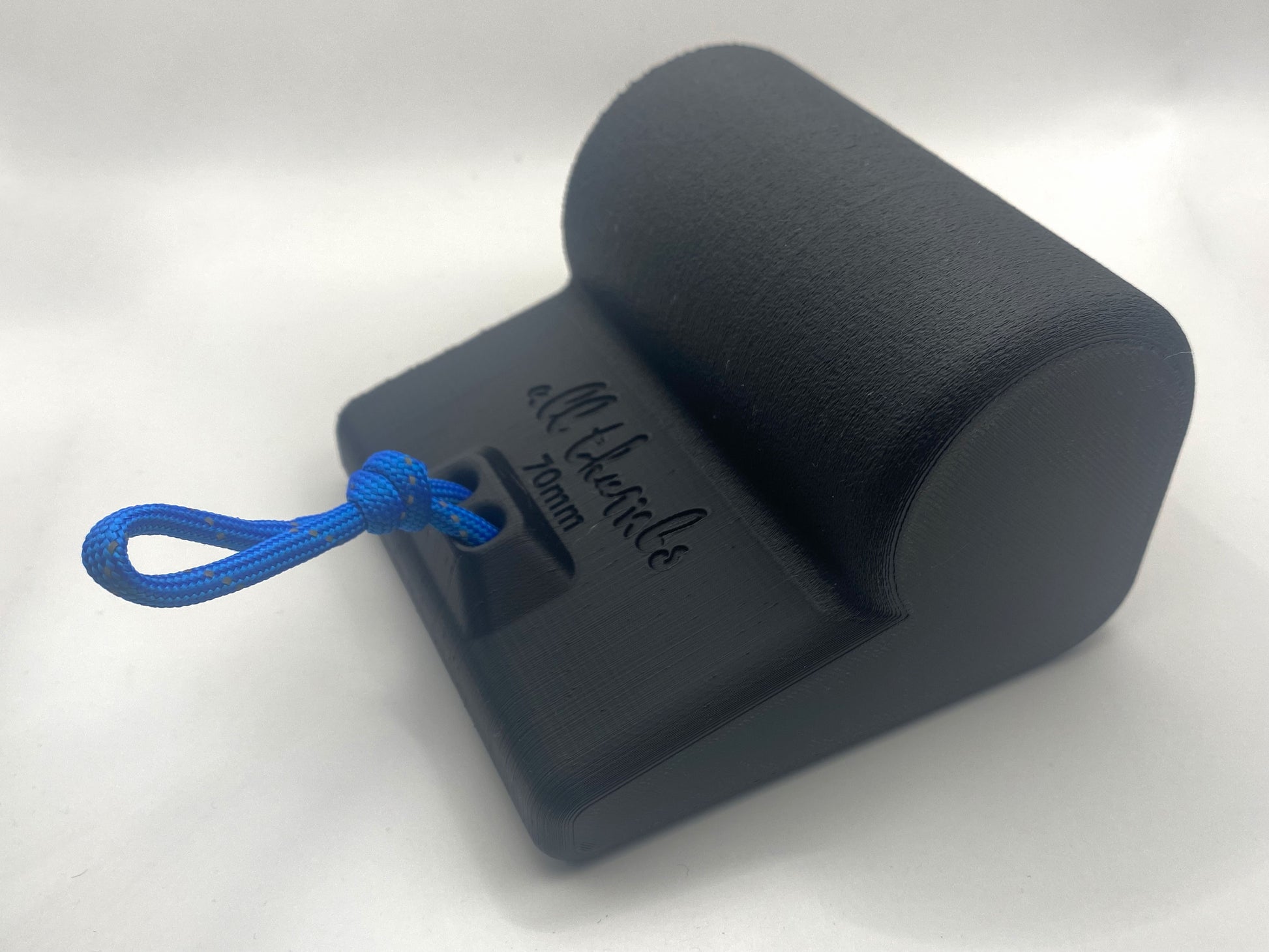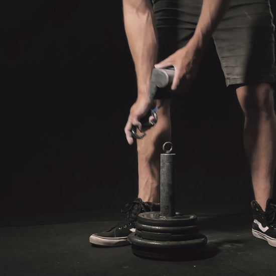 A tool to focus thumb engagement and thumb pressure strength training. The rounded grip folds nicely into the nooks and crannies of the thumb web while, the fingers stay flat and lightly engaged forcing the thumb to flex inward to keep the weight up.